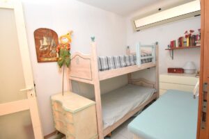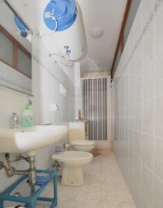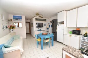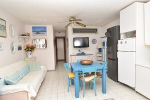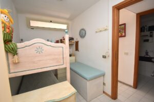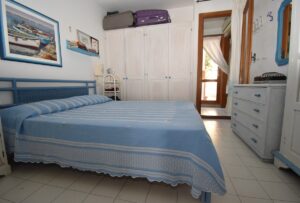 E’ composto da una camera matrimoniale, una cameretta con letto a castello e piccolo ripostiglio, sala con angolo cottura, due bagni , terrazzo con vista mare e comoda veranda posteriore.