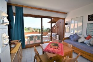 Appartamento ubicato nel condominio Coralli a Portisco, composto da una camera matrimoniale , soggiorno con divano letto , un bagno con doccia, cucina e terrazzo con vista mare.