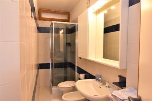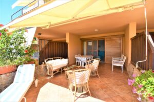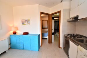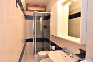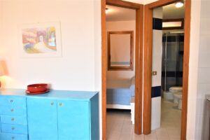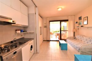E’ un Bilocale composto da una camera matrimoniale, sala con angolo cottura, un bagno con doccia , terrazzo con vista mare e terrazzino posteriore.